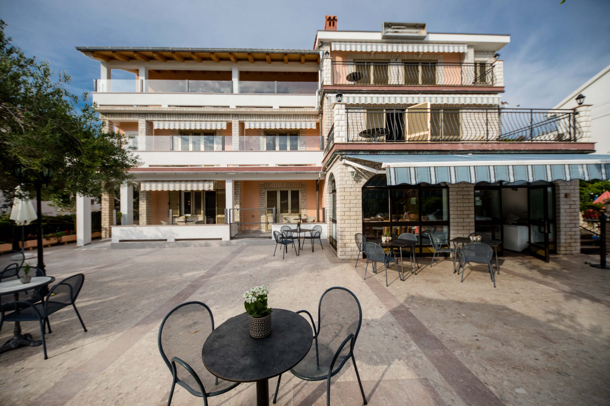 Unsere Zimmer sind allesamt mit Liebe eingerichtet: Räume in denen man den Urlaub genießen kann – auch als Familie. Viel Licht und ein Ausblick auf die herrliche Adriaküste. Ein Grossteil der Doppelzimmer hat dazu noch einen Balkon zur Südseite. Das Haus liegt in direkter, kinderfreundlicher Strandnähe (flacher Strand, inkl. Bistro Terrasse direkt am Meer). Ein Aufenthaltsraum mit SAT-Fernseher, Klimaanlage und Bar ist ebenso vorhanden wie eine große Terrasse, wo Sie die Möglichkeit haben Ihr Abendmahl einzunehmen. Die Stadt Rab können Sie zu Fuß an der Meerespromenade entlang (auf dem Lungo Mare) in ca. 20 Minuten erreichen. Auf der Route entlang gibt es Taxi-Boot Haltestellen, wo Sie Ihren Fußweg verkürzen können.